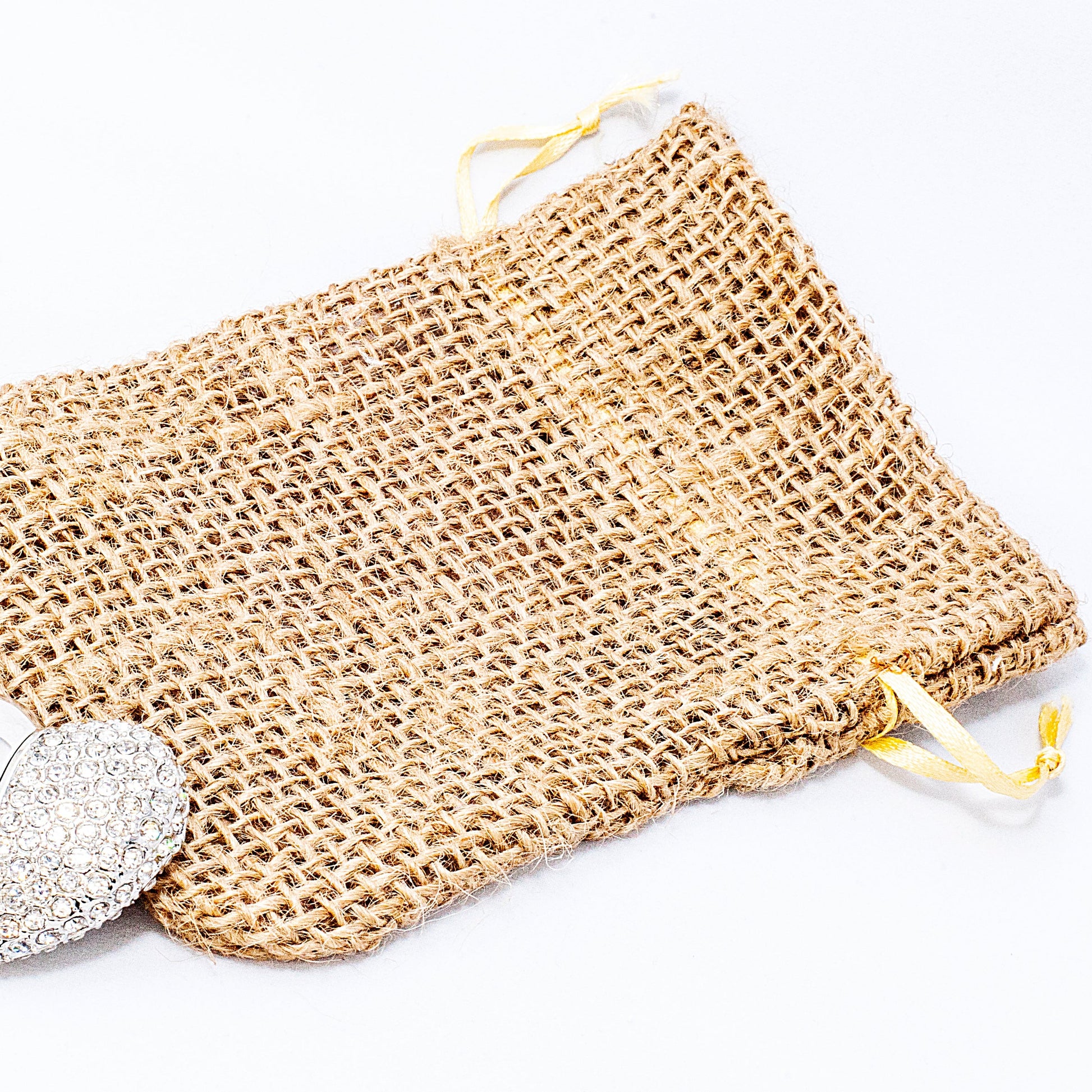 A soft fabric drawstring pouch designed to store and present USB flash drives. Finished with a secure tie closure, this pouch offers a lightweight, elegant alternative to rigid presentation boxes.